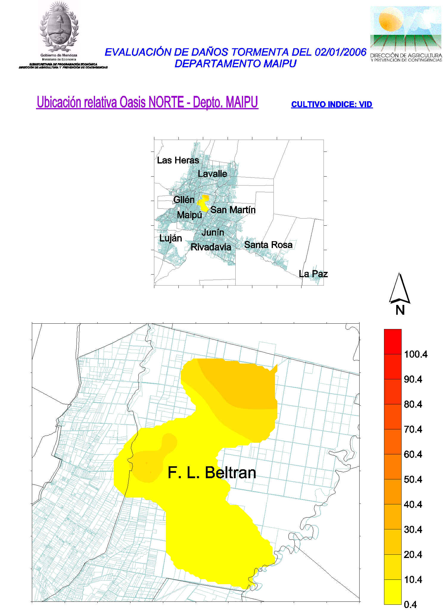 La Pega-Las Violetas-Paramillo-La Holanda-El Central-F.L. Beltran- Rodeo del Medio -Tres Porteñas-Chapanay-Las Chimbas-Montecaceros-El Espino-Alto Verde-El Ramblon-Santa Rosa: Dptos.Lavalle-Guaymallén-Maipú-San Martin-Sta. Rosa