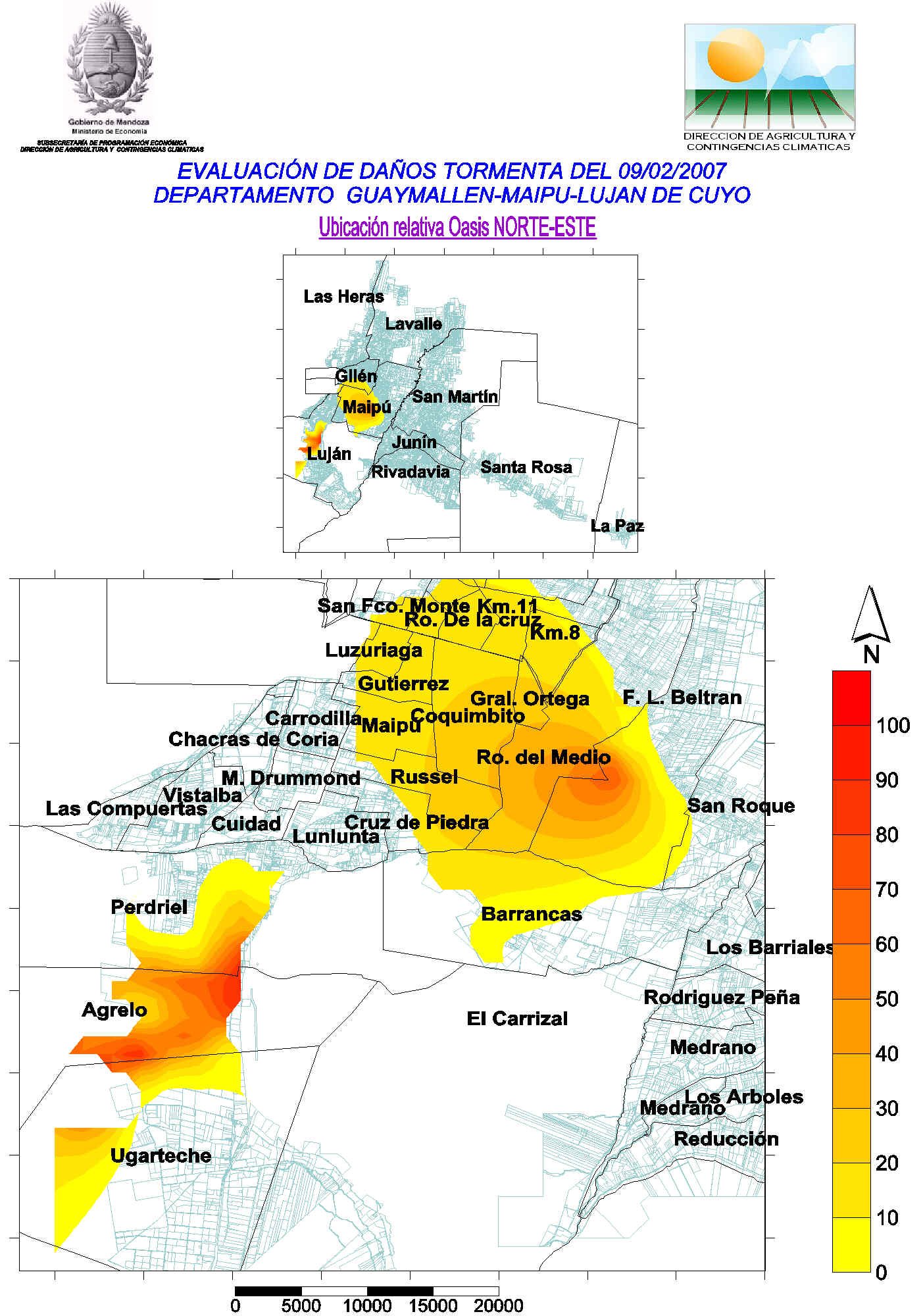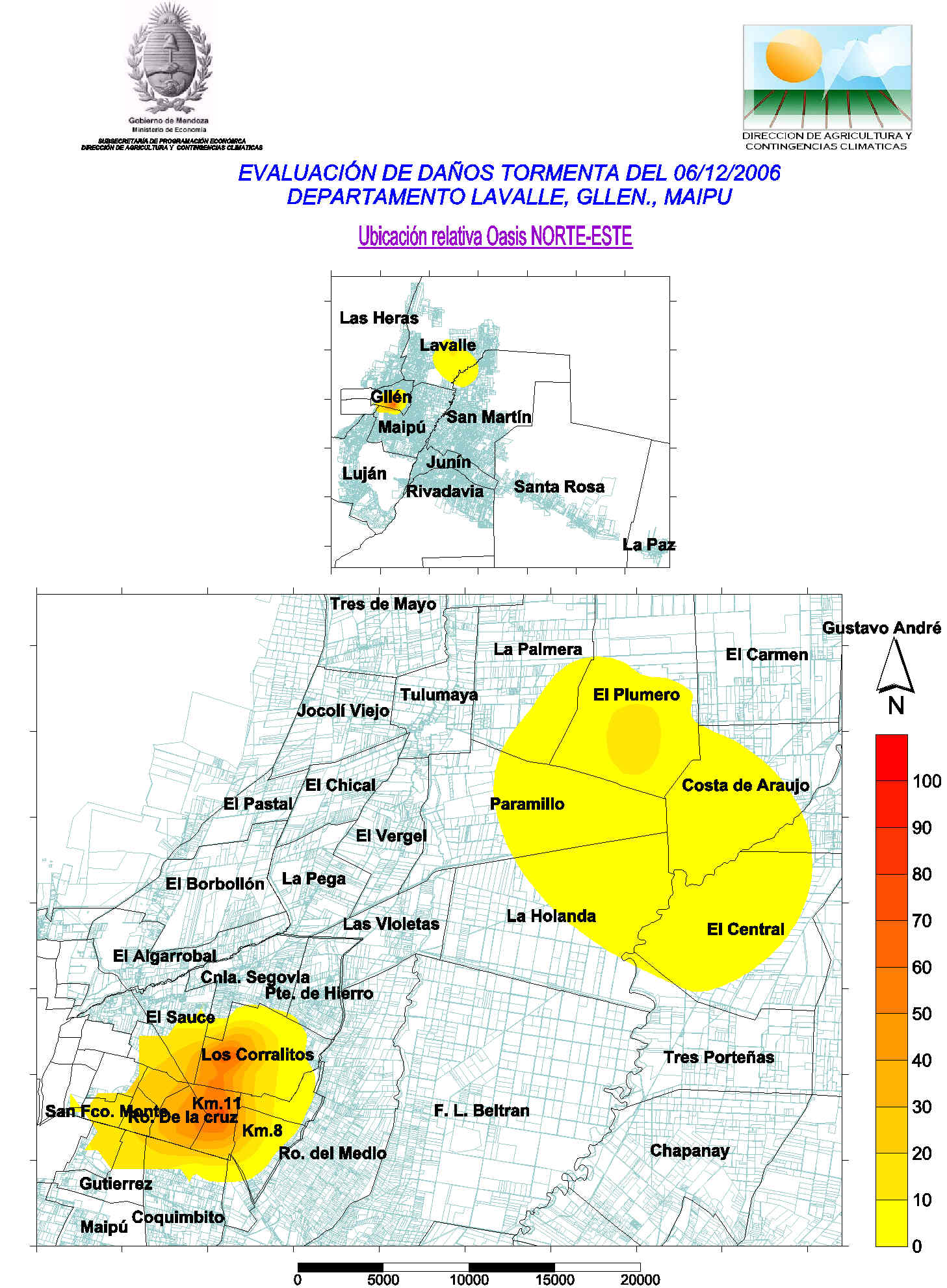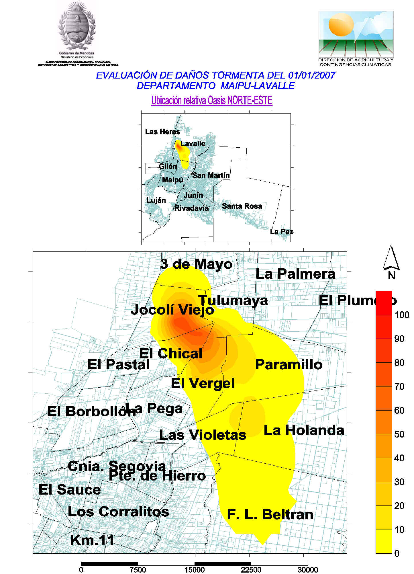 La Palmera-El Plumero-Paramillo-Costa de Araujo-El CEntral-La Holanda:Dptos. Lavalle-San Martin/// El Sauce-Los Corralitos-Km11-Km8-Rodeo de la Cruz-San Fco. del Monte-Gutierrez: Dptos. Guaymallén-Maipú.